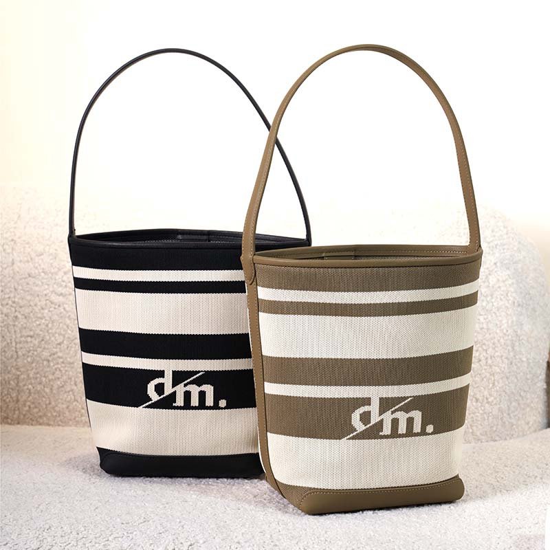 Striped bucket bag